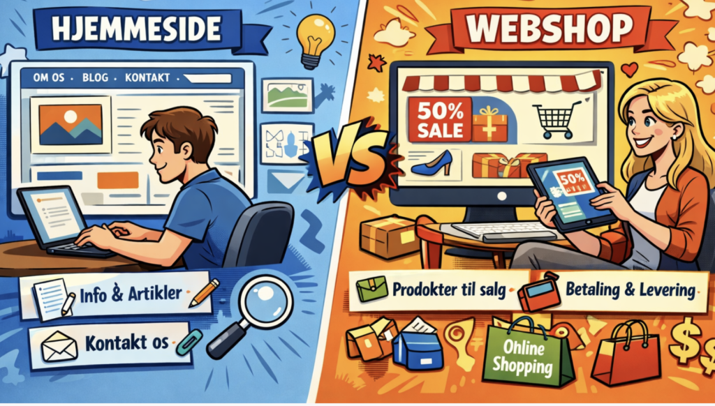 Valget mellem hjemmeside og webshop er sjældent et spørgsmål om mode eller teknik. Det er et spørgsmål om forretning.