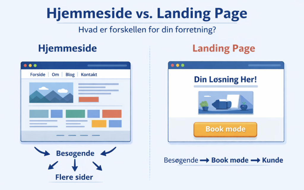 Hjemmeside vs. landing page, hvad er forskellen for din forretning? Læs mere